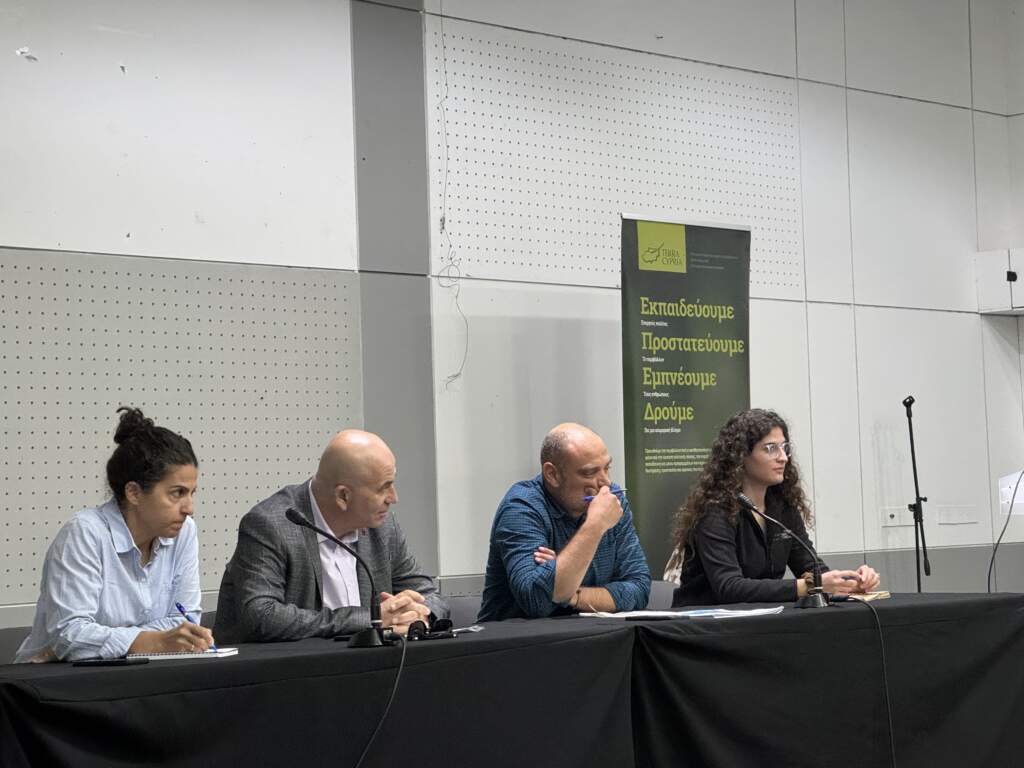 Presentations were delivered by Maria Constantinou (Terra Cypria), Dr. Nikoletta Kythreotou (Department of Environment), and Dr. George Pavlidis (journalist – academic). Opening remarks were given by Cleitos Papastylianou on behalf of Terra Cypria and Dimitris Stratis on behalf of the Union of Cyprus Journalists.